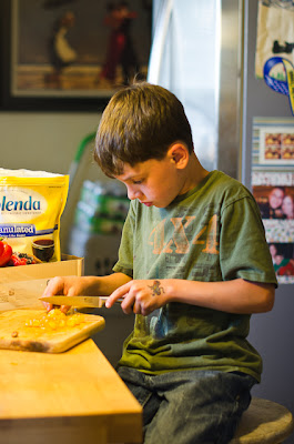 Helping me with the plums we had in the fridge. He did a great job!